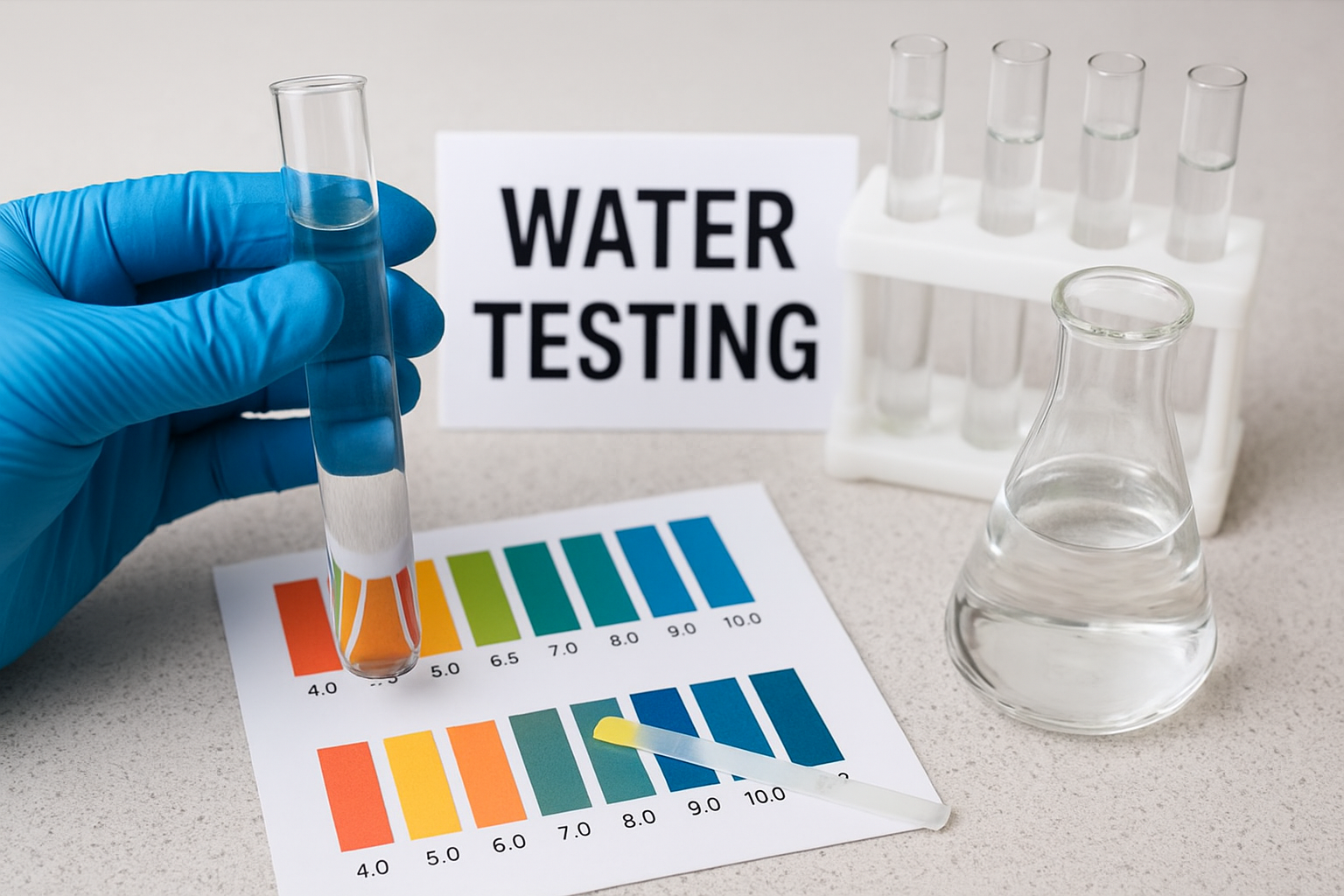 Water Testing is the analytical evaluation of water samples to determine their physical, chemical, and microbiological characteristics. It involves laboratory techniques such as spectrophotometry, chromatography, titration, and microbial culturing to detect parameters like pH, turbidity, dissolved oxygen, total dissolved solids (TDS), hardness, heavy metals, organic compounds, and pathogenic organisms. The results are compared with regulatory standards (e.g., BIS, WHO, EPA) to assess potability, industrial suitability, and environmental compliance.
